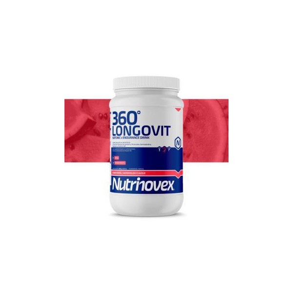 Nutrinovex Longovit 360º Sabor Sandía. Se presenta en un bote de 1000gr. Bebida 2 en 1 isotónica y energética, ayuda reponer sales y aporta energía al deportista.