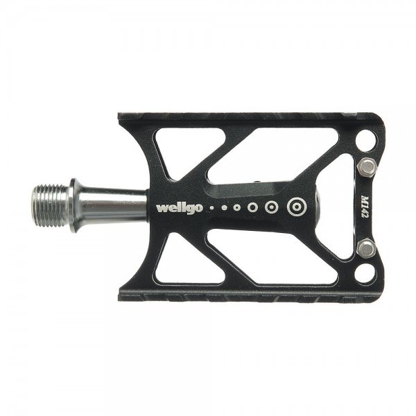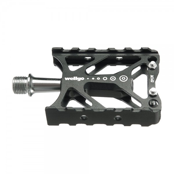 Pedales de plataforma de la marca Wellgo. Construidos en aluminio ligero y duradero.